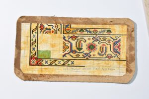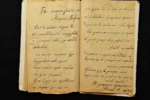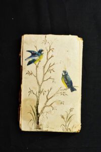 | n@m_0183 Λεύκωμα Μαρίας Πατρικίου 1907-1910 (α) | Λεύκωμα σε σημειωματάριο δερματόδετο λευκό με διακόσμηση καρδερίνες σε κλαδί. Φθαρμένο εξώφυλλο 12 φύλλα, διακόσμηση με χάρτινες φιγούρες ρωσσικές με κυριλική γραφή. 100*164mm. Μηχανικές φθορές και υγρασία. ΑΝΑΓΚΗ ΣΥΝΤΗΡΗΣΗΣ |