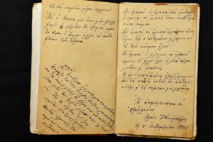 | n@m_0255 Λεύκωμα Μικρά Μυστικά Αγλαϊας Χατζημιχάλη 1930 | Σημειωματάριο αγράμμωτο με σκληρό εξώφυλλο. Στο εξώφυλλο "Poesie". 71 φ. 192*127 τα φύλλα, 130*200@16mm εξώφυλλο. Σχέδια Τάκης Θηβαίος, πενάκι και ακουαρέλα |