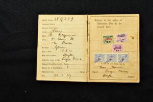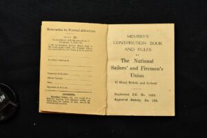 | n@m_0184 Ναυτικό Φυλλάδιο (α) | Βιβλιάριο συνδρομών και κανονισμός: "Members' Contribution Book and Rules of The National Sailors; and Firemen's Union of Great Britain and Ireland του […] , [Ναυτικό φυλλάδιο 30-1-1917]. Δερματόδετο 117*90 mm. Με λιγοστά ένσημα. |