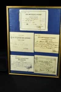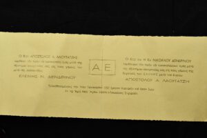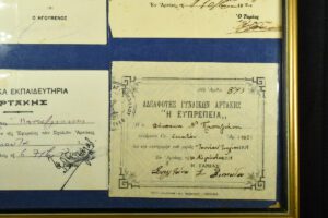 | n@m_χα031 Απόδειξη Πληρωμής Συνδρομής στην Αδελφότητα Γυναικών Αρτάκης _Η Ευπρέπεια_ 30-8-1921 | Απόδειξη πληρωμής της Δέποινας Ν. Παπαζιάνη, καδραρισμένη με άλλες τέσσερις. Να ξεκαδραριστεί! |