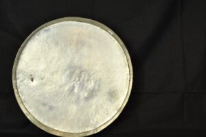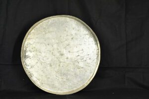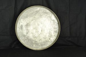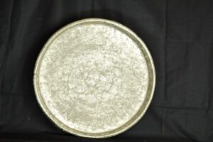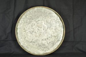 | n@m_0168β Ταψί Χάλκινο (β) | Ταψί χάλκινο με επικασιτερωμένο με σιδερένια στεφάνη κάτω από το χείλος. Φ 457-497 mm. Εγχάραγκτη διακόσμηση με εμόκεντρους κύκλους. Φθορές κάτω από το χείλος. |