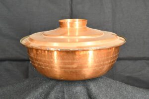 | n@m_0005 Γάστρα Μπακιρένια με Καπάκι | Σκεύος χάλκινο επικασσιτερωμένο χωρίς λαβές με καπάκι. |
