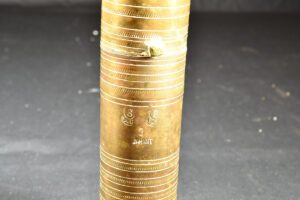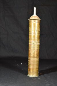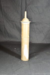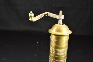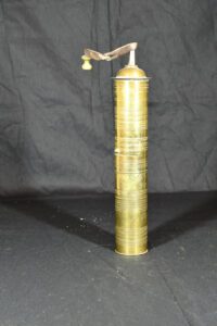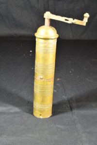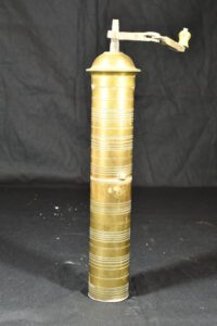 | n@m_0207 Μύλος Καφέ | Ορειχάλκινος. Πάτος όπως κάλυκας οβίδας. Νο3 . Εγχάραγκτη διακόσμηση με ομόκεντρους κύκλους. Φ55 Υ343 βραχίονας 165 |
