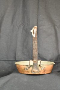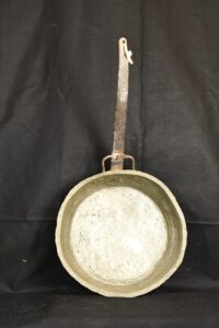 | n@m_0343 Τηγάνι (β) | Χάλκινο τηγάνι επικασιτερωμένο με σιδερένια λαβή. Φ 198-250 mm το σώμα. Λαβή 313mm. Υ55 mm. |