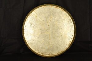 | n@m_0031 Πλακί Μπακιρένιο με Καπάκι (μεγάλο) (α) | Σκεύος χάλκινο με ορειχάλκινες λαβές και νεότερο καπάκι. Φ295 με λαβές 383mm Υ 71 με λαβές 100. Καπάκι Φ 294-75mm, Υ 62mm. Συνολικά Υ 124mm |