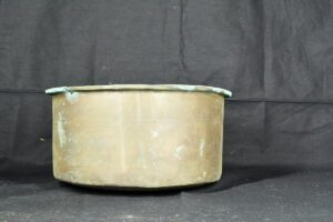 | n@m_0392 Κατσαρόλα Μπακιρένια χωρίς Καπάκι | Κατσαρόλα χάλκινη επικασιτερωμένη εσωτερικά. Οξειδώσεις στον χαλκό. Σκισμένη. Φ 284-258, Υ 145mm. |