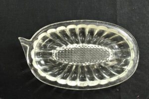 | n@m_χα069 Τρίφτης Γυάλινος | Τρίφτης οβάλ με τα "δόντια" στη μέση. Γιάλινο. 175*109 Υ24. σπασμένη λαβή από την μία πλευρά. |