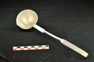 | n@m_0004 Μπρίκι | Μπρίκι ορειχάλκινο με σιδερένια λαβή. Περιέχει 5 κουτάλια και 4 πηρούνια |